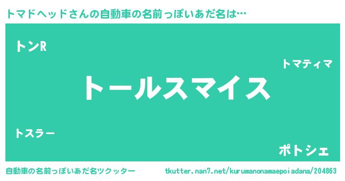 | 欧米人風あだ名 | 『トリンドルトマドヘッド』 |