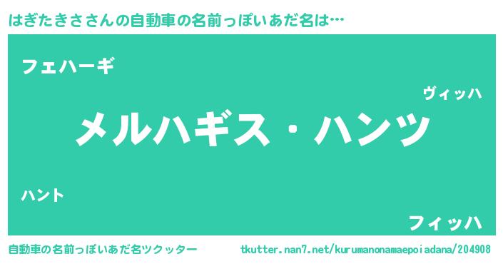 | 男性向けラノベタイトル風あだ名 | 『Re:はぎたきさから始める異世界生活』 |