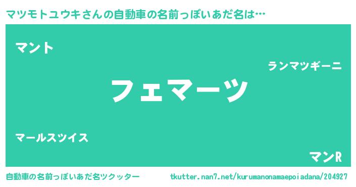 | 欧米人風あだ名 | 『マツモトユウキ・ステッグマイヤー』 |