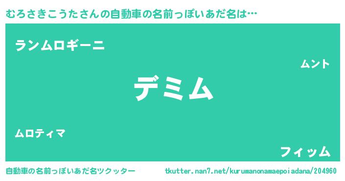 | 男性向けラノベタイトル風あだ名 | 『むろさきこうたという概念が存在しない退屈な世界 』 |