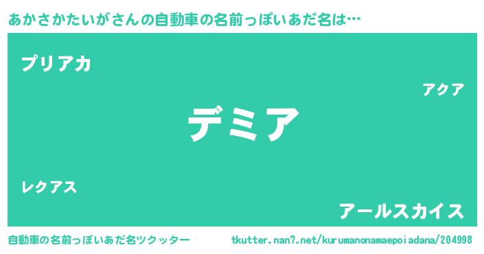 | ヘコむあだ名 | 『あかさかたいが(笑)』『あかにー』 |