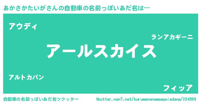 | 男性向けラノベタイトル風あだ名 | 『転生したらあかさかたいがだった件』 |