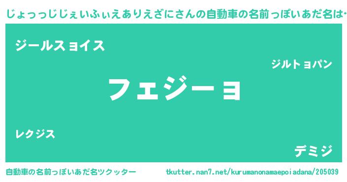 | 胡散臭い通販商品みたいなあだ名 | 『絶対に幸福をもたらす招き猫…その名も「じょっっじじぇいふぃえありえざに」』 |