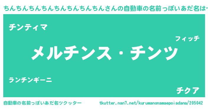| 男性向けラノベタイトル風あだ名 | 『Re:ちんちんちんちんちんちんちんちんから始める異世界生活』 |
