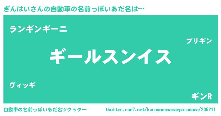 | 男性向けラノベタイトル風あだ名 | 『転生したらぎんはいだった件』 |