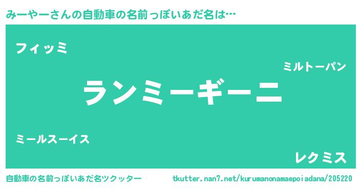 | 欧米人風あだ名 | 『アンジェラ・みーやー』 |