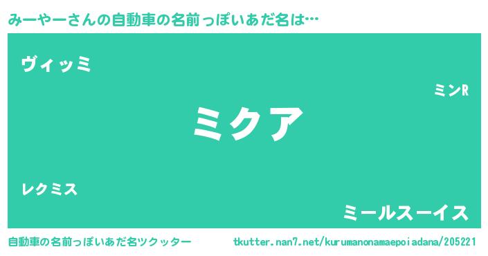 | 欧米人風あだ名 | 『みーやークリステル』 |