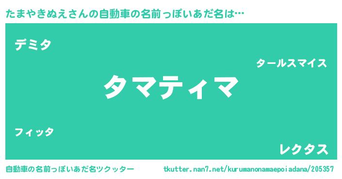 | 可愛いあだ名 | 『たんたん』『たまやきぬえママ』 |