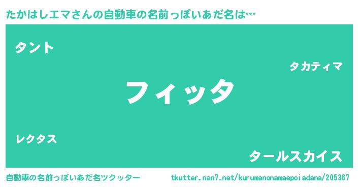 | ポケモン風あだ名 | 『タックウザ』『ヒタカハシエマ』 |