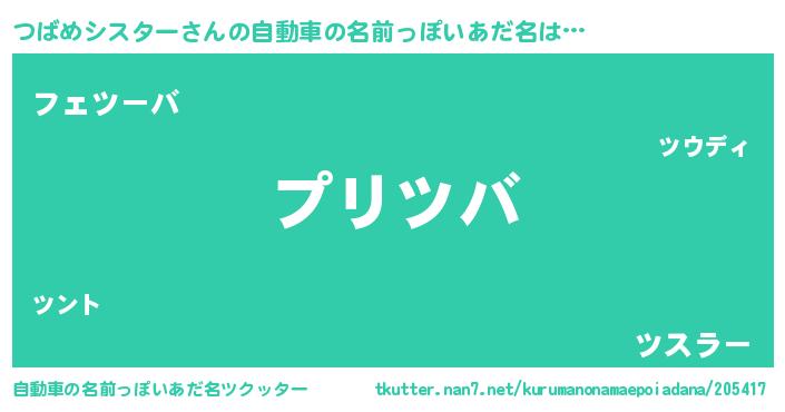 | 2回繰り返すあだ名 | 『つばつば』『とぽとぽ』『つつばば』 |