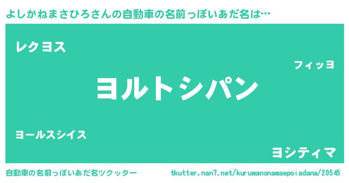 | 意味不明あだ名 | 『とにかく怪しいよしかねまさひろ』 |