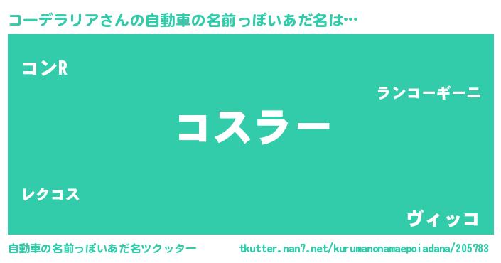 | 意味不明あだ名 | 『コーデラリアフォーエバー』 |
