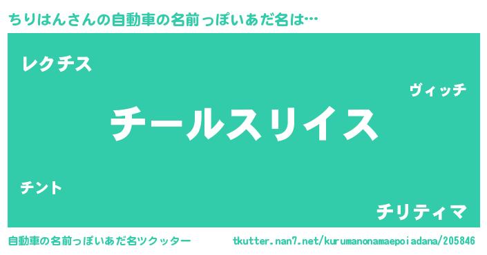 | 男性向けラノベタイトル風あだ名 | 『チリハンスレイヤー』 |