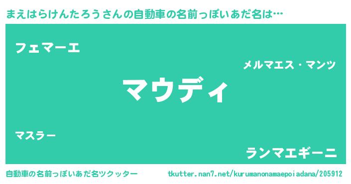 | 意味不明あだ名 | 『住所不定無職まえはらけんたろう(9歳)』 |
