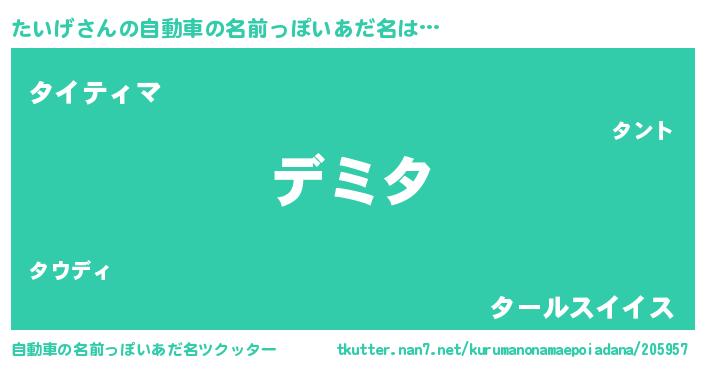| ヘコむあだ名 | 『たいげ(震え声)』『たいもー』 |