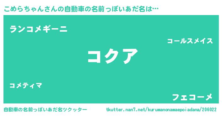 | 男性向けラノベタイトル風あだ名 | 『やはりこめらちゃんの青春ラブコメはまちがっている 』 |