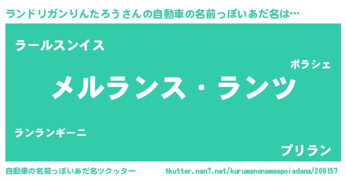 | 男性向けラノベタイトル風あだ名 | 『Re:ランドリガンりんたろうから始める異世界生活』 |