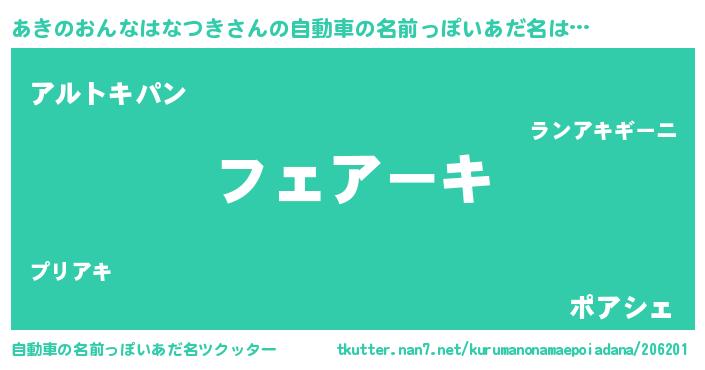 | 意味不明あだ名 | 『とにかく怪しいあきのおんなはなつき』 |