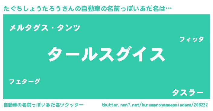 | 男性向けラノベタイトル風あだ名 | 『タグチショウタロウスレイヤー』 |