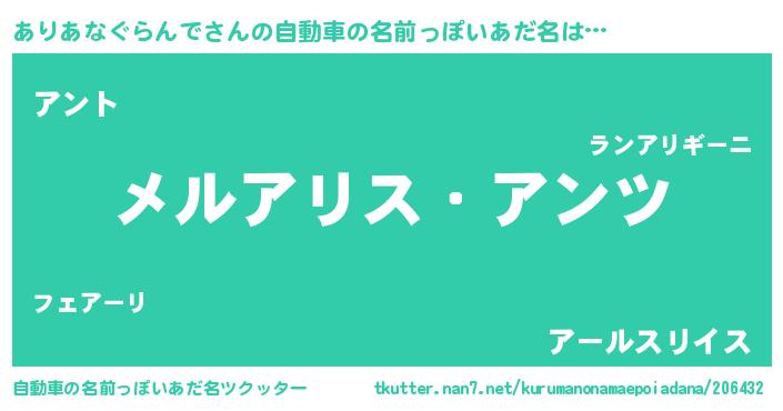 | 意味不明あだ名 | 『自称ありあなぐらんで』 |