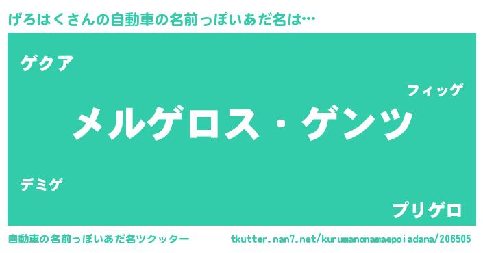 | 男性向けラノベタイトル風あだ名 | 『Re:げろはくから始める異世界生活』 |