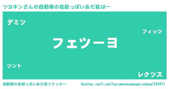 | 胡散臭い通販商品みたいなあだ名 | 『絶対に幸福をもたらす水素水…その名も「ツヨキン」』 |