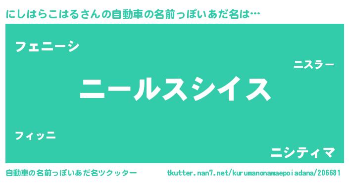 にしはらこはるさんの自動車の名前っぽいあだ名をツクッター!