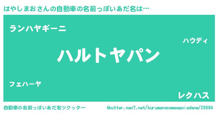 | 男性向けラノベタイトル風あだ名 | 『ダンジョンにはやしまおを求めるのは間違っているだろうか』 |