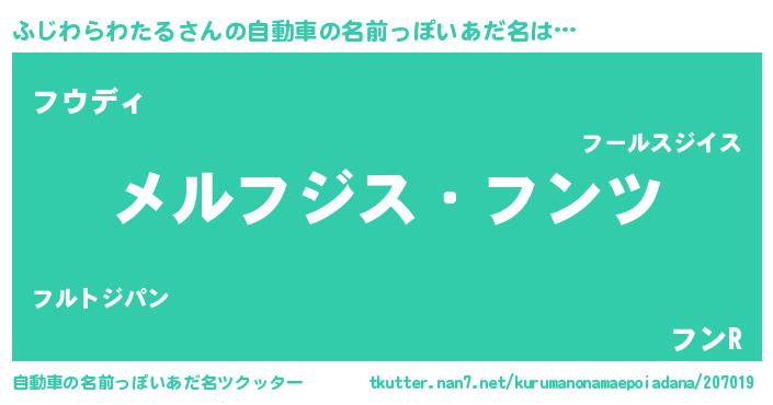 男性向けラノベタイトル風あだ名 | 『Re:ふじわらわたるから始める異世界生活』 |