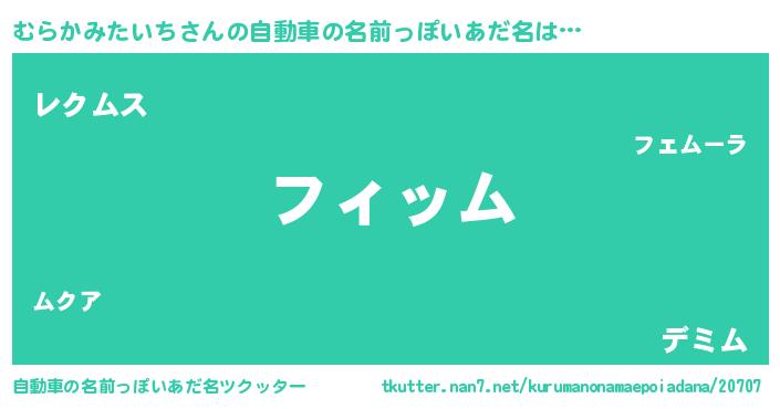 | 男性向けラノベタイトル風あだ名 | 『おまえをオタクにしてやるから、俺をむらかみたいちにしてくれ! 』 |