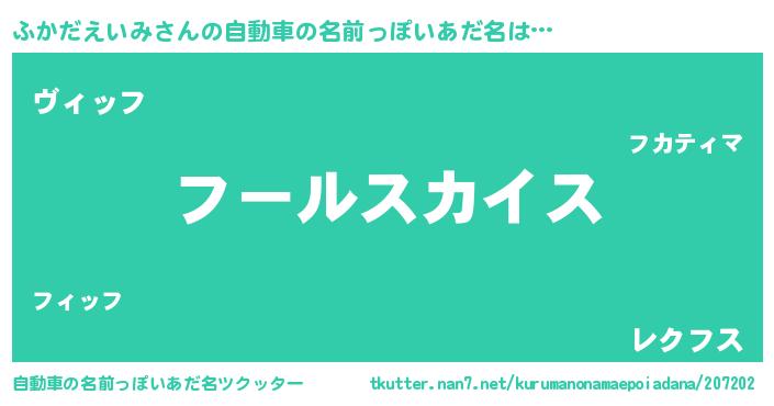 ヘコむあだ名 | 『ふかだえいみ(爆)』『ふかにゅー』 |