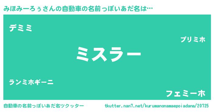 | 欧米人風あだ名 | 『みほみーろぅクリステル』 |