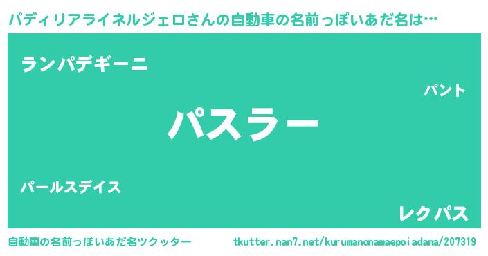 | 欧米人風あだ名 | 『パディリアライネルジェロクリステル』 |