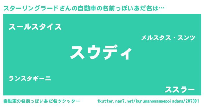 意味不明あだ名 | 『住所不定無職スターリングラード(7歳)』 |