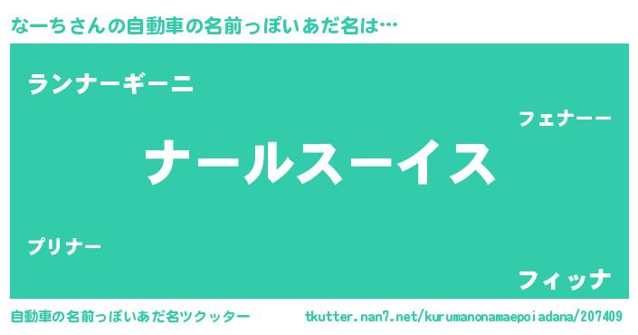 | 男性向けラノベタイトル風あだ名 | 『転生したらなーちだった件』 |