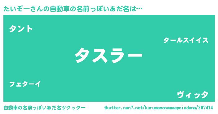 | 欧米人風あだ名 | 『たいぞークリステル』 |