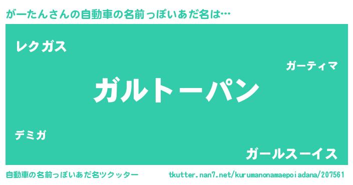 | 男性向けラノベタイトル風あだ名 | 『ダンジョンにがーたんを求めるのは間違っているだろうか』 |