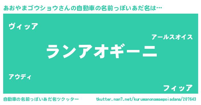 | 意味不明あだ名 | 『永久保存あおやまゴウショウ』 |