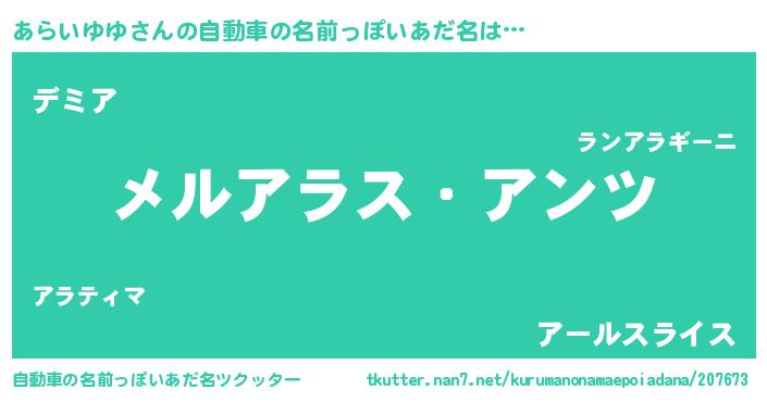 | 男性向けラノベタイトル風あだ名 | 『Re:あらいゆゆから始める異世界生活』 |