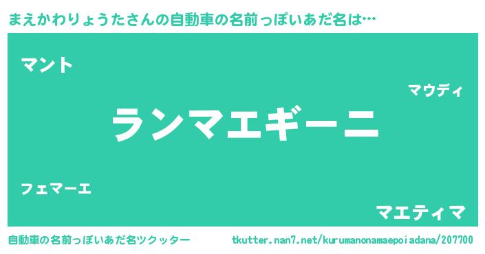 | 意味不明あだ名 | 『とにかく怪しいまえかわりょうた』 |