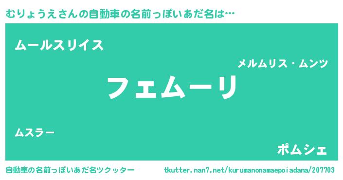 | 欧米人風あだ名 | 『むりょうえ・ステッグマイヤー』 |