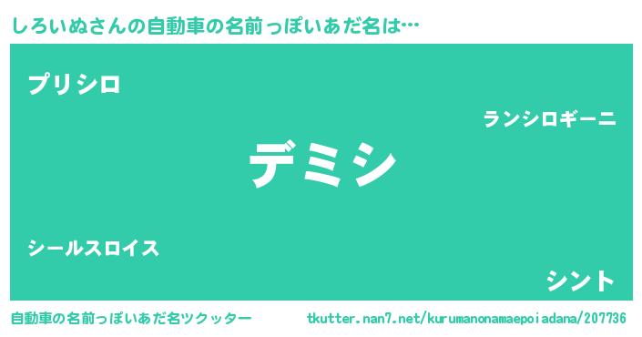 | 男性向けラノベタイトル風あだ名 | 『しろいぬという概念が存在しない退屈な世界 』 |