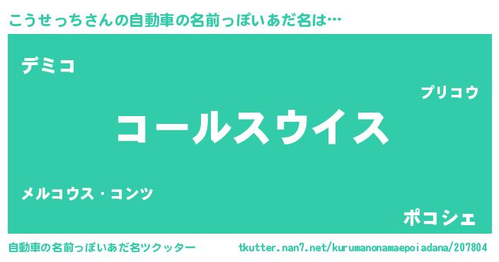 | 男性向けラノベタイトル風あだ名 | 『コウセッチスレイヤー』 |