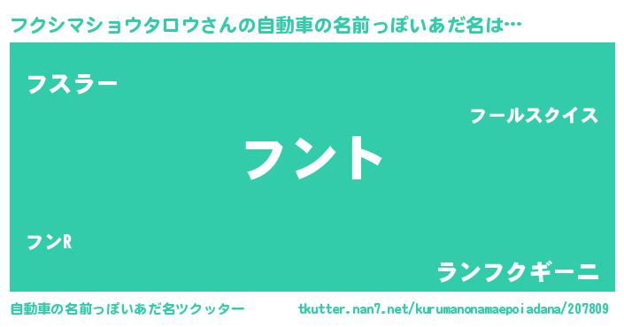 | 欧米人風あだ名 | 『ウサインフクシマショウタロウ』 |