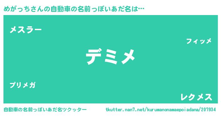 | 胡散臭い通販商品みたいなあだ名 | 『絶対に幸福をもたらす水素水…その名も「めがっち」』 |