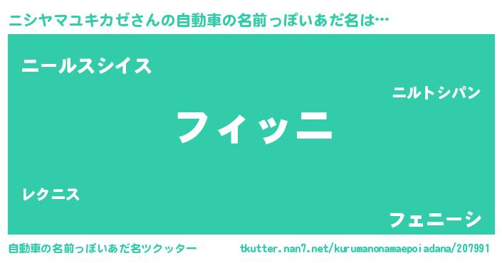 | 女子向けラノベタイトル風あだ名 | 『ニシヤマユキカゼ夫妻のなれそめ』 |