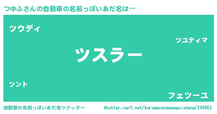 | 欧米人風あだ名 | 『つゆふクリステル』『ダレノガレつゆふ』 |