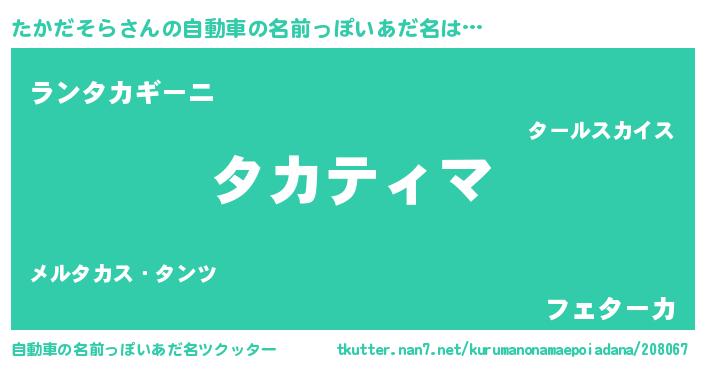 | 男性向けラノベタイトル風あだ名 | 『タカダソラアートオンライン』 |