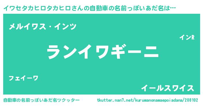 | 欧米人風あだ名 | 『アンジェラ・イワセタカヒロタカヒロ』 |