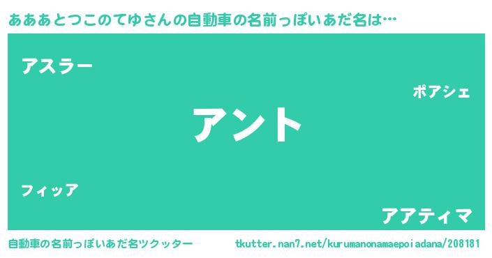 | ポケモン風あだ名 | 『ヒアアアトツコノテユ』『アアアダネ』 |